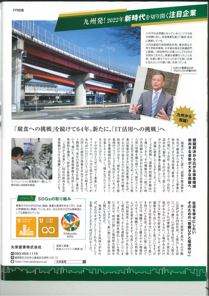 お知らせ ホームお知らせプレスリリース雑誌『日経トレンディ(2022年9月発売号)』に掲載されました。 2022/09/09 プレスリリース #リクルート #北九州市 #福岡県 #経済雑誌 雑誌『日経トレンディ(2022年9月発売号)』に掲載されました。 このたび、弊社が雑誌『日経トレンディ』(令和4年9月4日発行号)に掲載されました。 「2022年10月号」の特集 ~九州発!2022年新時代を切り開く注目企業~ 課題解決から拡がる弊社の事業領域や、技術分野への推進、社員への想いなどが紹介されています。 弊社は、これからも「腐食への挑戦」を掲げ、皆様から必要とされる企業で在るために、社員一丸となって努力を続けてまいります。 前の記事を見る 一覧に戻る 次の記事を見る NEWS プレスリリース 重要なお知らせ リクルート 北九州市 福岡県 経済雑誌 CONTACT 防食メンテナンス・FRPに関するご質問や調査相談など、 まずはお気軽にご相談ください メンテナンス調査のご相談、 お問い合わせはお気軽にご連絡ください 製品カタログはこちら お問い合わせはこちら お電話でのお問い合わせ 093-453-1116 受付時間:土日・祝除く 8:00〜17:00