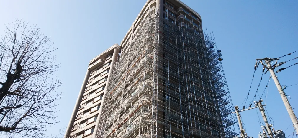 防食・補修・メンテナンス工事に特化してきた丸栄産業は、その経験と技術を活かしてマンション・ビルの資産価値を守ることに努めています。建物の美観を保ち、さらに快適性や機能性を高める改修工事を行います。
