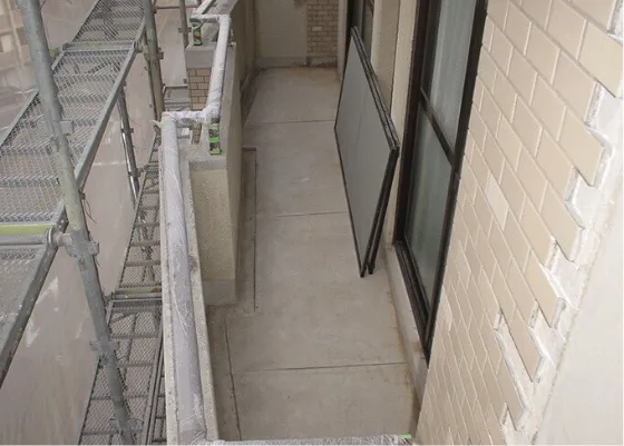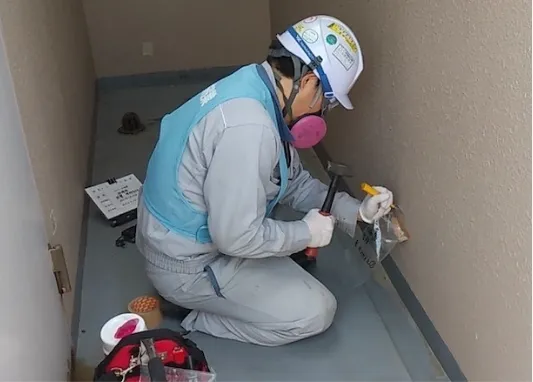 バルコニーの防水性を高めるため、ウレタン防水を行います。