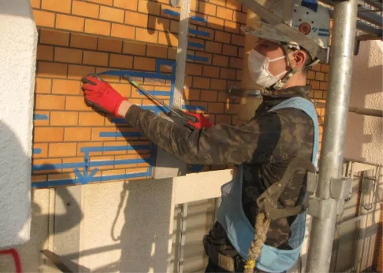 調査・マーキングが終わると、劣化状況に合わせて一つ一つ補修を行っていきます。