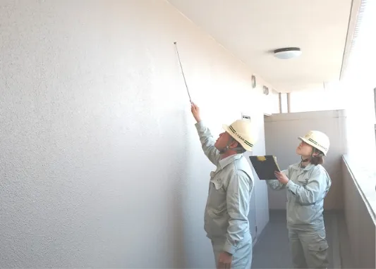 工事が完了してからも、1・3・5・10年後ごとに無償の点検を行っています。建物に不具合が生じていないか目視と打診調査を行い、その都度報告書をご提出いたします。工事が完了したら終わりではなく、アフターメンテナンスを通して皆様と末永くお付き合いしていきます。